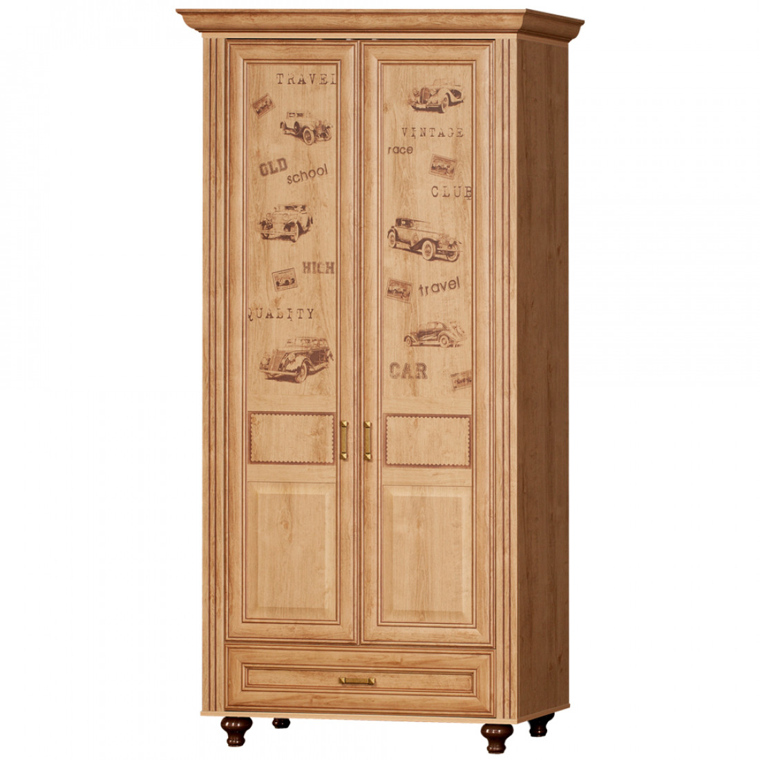 Корпус: ДСП, декор – дуб ридинг. Основание кровати – ламели